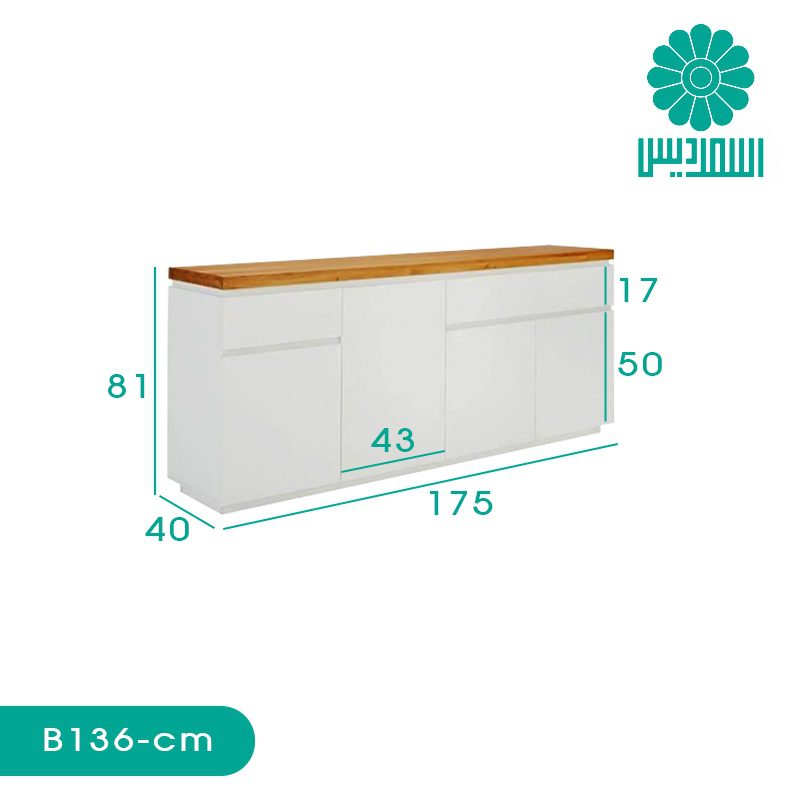کنسول اسمردیس مدل B136 دارای 4 درب و 3 کشو میباشد و ترکیب رنگی متنوعی دارد.