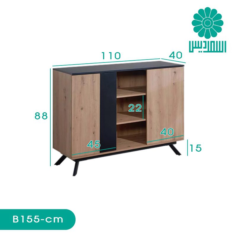 کنسول اسمردیس مدل B155 با ظاهری ساده و زیبا، مناسب دکوراسیون منزل یا اداری با طراحی مدرن است.
