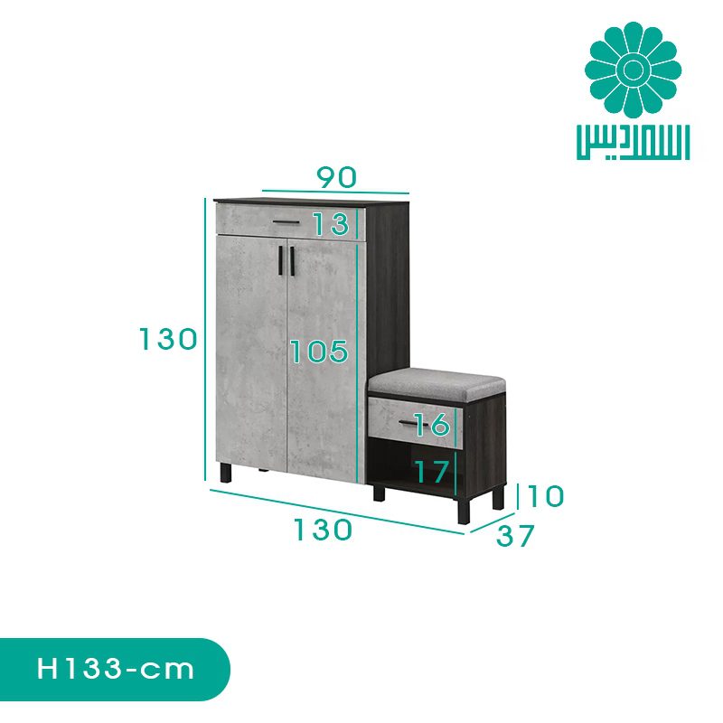 جاکفشی اسمردیس مدل H133 دارای 2 کشو، 2 درب و فضای نشیمن همراه باکس می باشد.