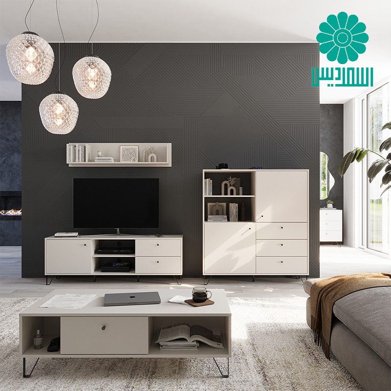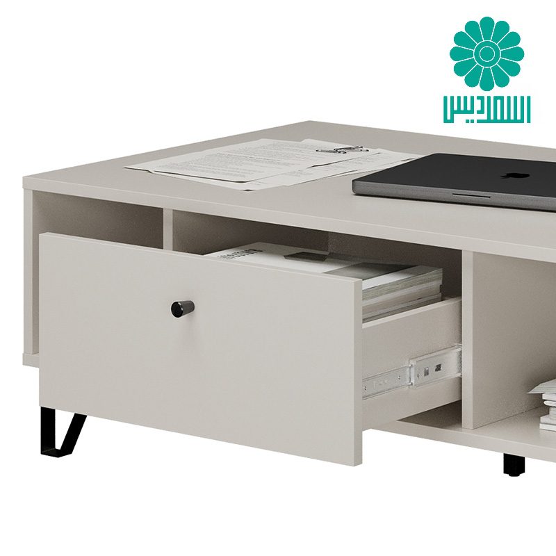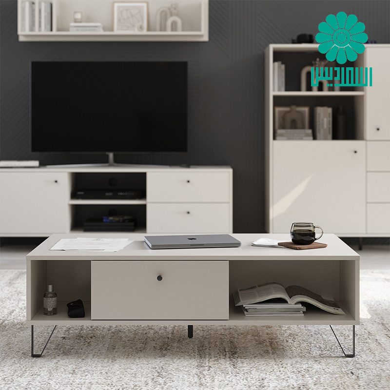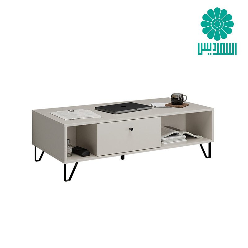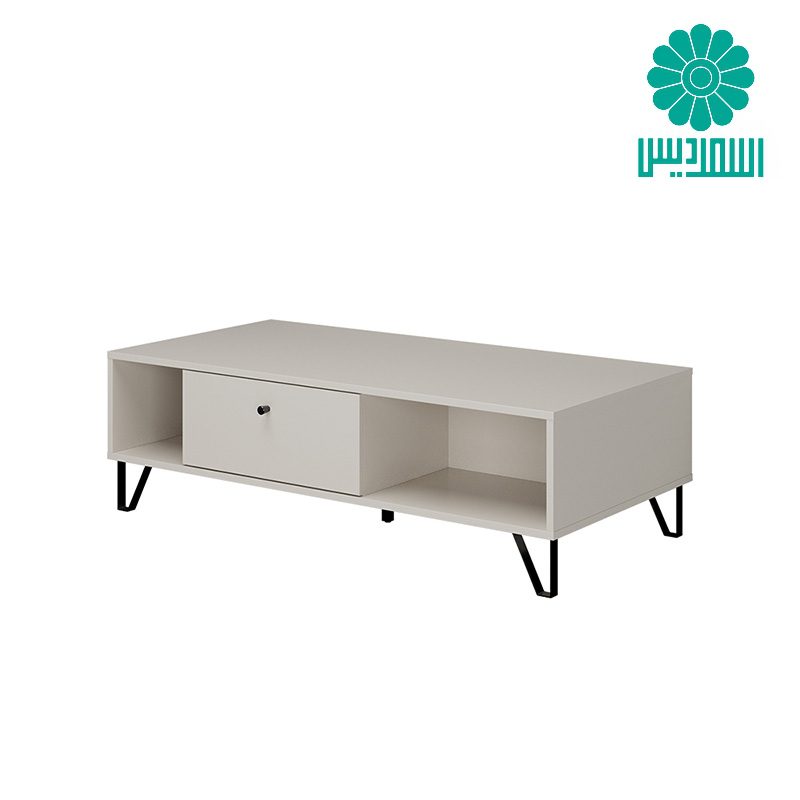 میز جلو مبلی اسمردیس مدل J179 دارای 2 قفسه، 1 کشو همراه با پایه های فلزی بوده و ترکیب رنگی متنوعی دارد.