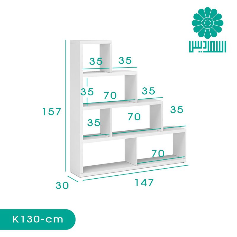کتابخانه اسمردیس مدل K130 دارای 6 قفسه با ابعاد متفاوت با طراحی خاص می باشد.